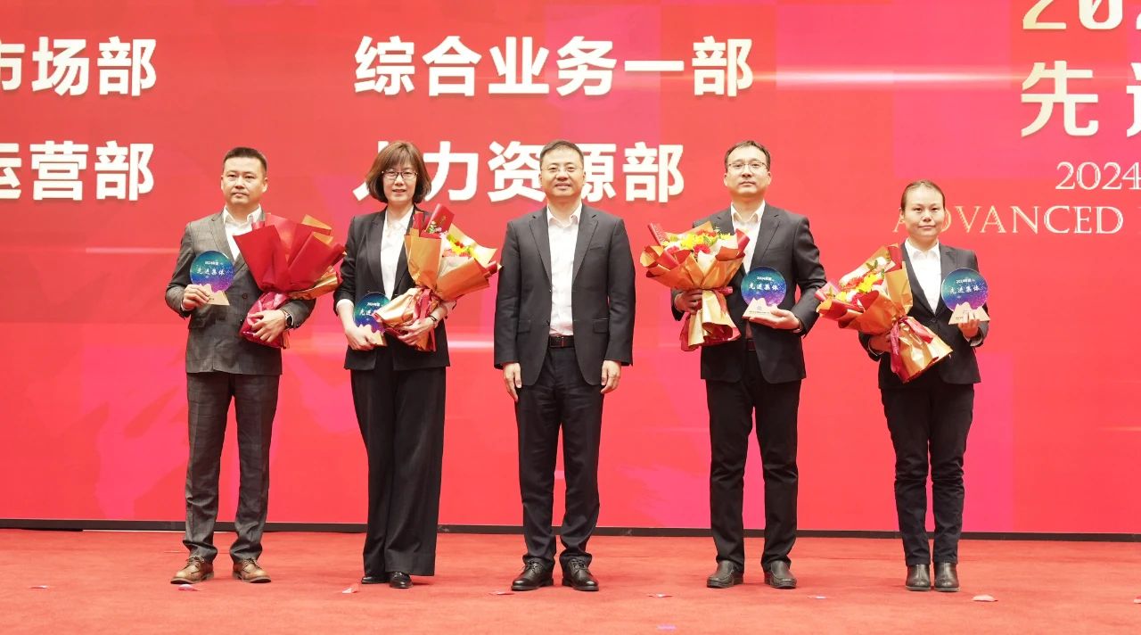 ▲董事長徐敏俊(中)為先進(jìn)集體頒獎(jiǎng)